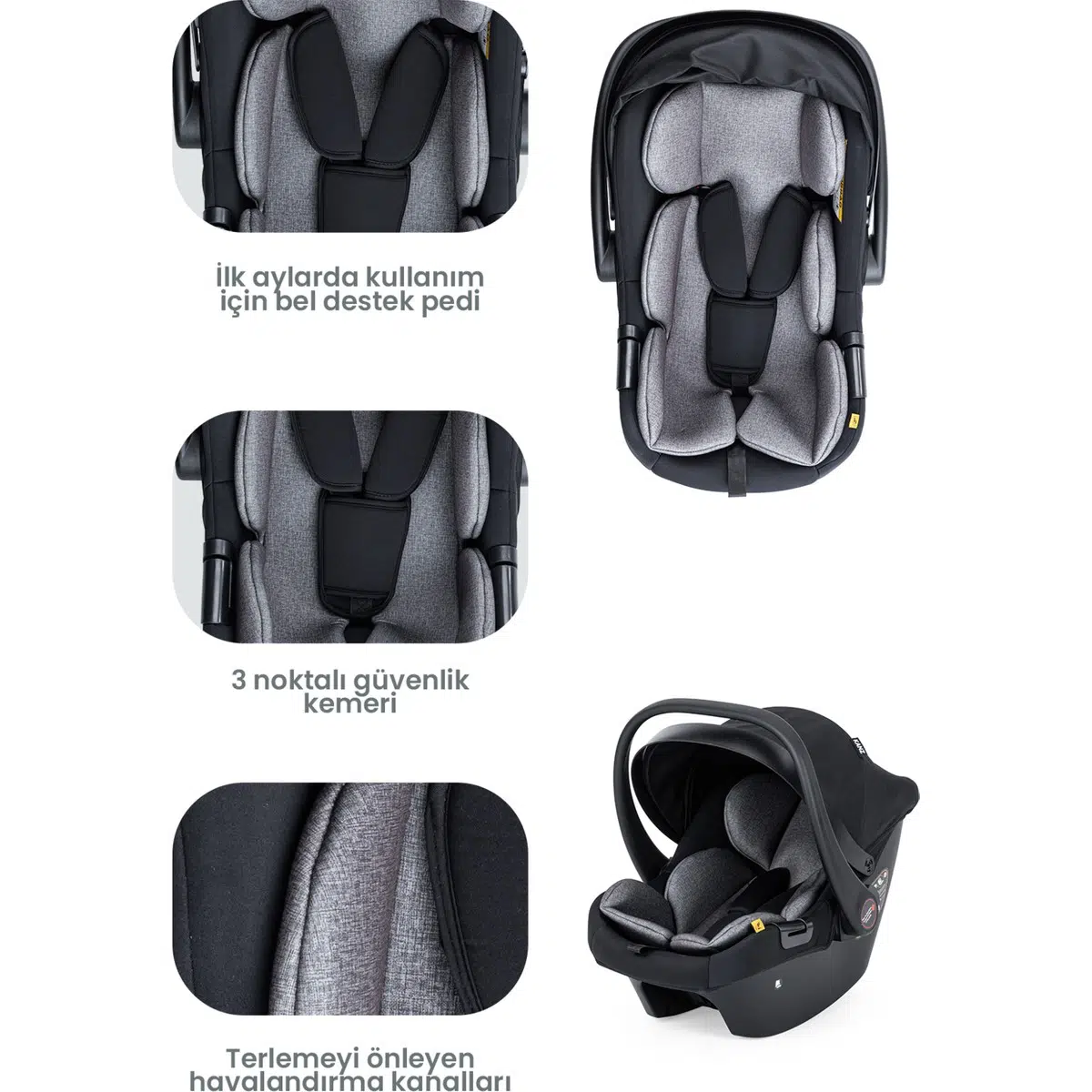nTaşıma koltuğu, ana kucağı ve oto koltuğu olarak kullanabilme