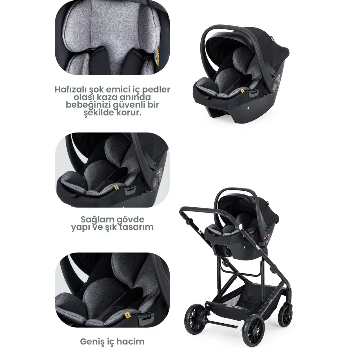 nHafızalı şok emici iç pedler olası kaza anında bebeğinizi güvenli bir şekilde korur.